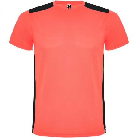 Funktions-T-Shirt aus atmungsaktivem Stoff. Rundhalsausschnitt. Kombination aus zwei Polyestergeweben im Rücken- und Schulterbereich. Polyester Bienenwabe Vorne und 3D-Netz Polyester auf Schulter und Rücken. Material ist feuchtigkeitabsorbierend. Ziernähte auf den Schultern und Seiten. Schnitt mit verlängertem Rückenteil. Abnehmbares Etikett.