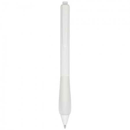 Kugelschreiber aus recyceltem Kunststoff mit gummiertem Schaft und Griff aus TPR. Tintenfarbe: Blau. Schreiblänge: 1000 Meter. Strichstärke: 1,0 mm.