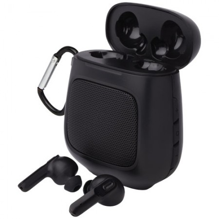 Der Remix kombiniert True Wireless Ohrhörer mit einem Bluetooth®-Lautsprecher. Sobald die Ohrhörer aus dem Etui genommen wurden, werden sie eingeschaltet und automatisch miteinander synchronisiert. Die Tragetasche dient auch als Ladestation für die Ohrhörer und als Bluetooth®-Lautsprecher. Das Etui kann die Ohrhörer mit einer einzigen Ladung viermal von 0 auf 100 % aufladen, und die Ohrhörer kann man mindestens 4 Stunden lang verwenden, bevor sie aufgeladen werden müssen. Das ergonomische Design der Ohrhörer sorgt dafür, dass sie auch unterwegs an Ort und Stelle bleiben. Die Ohrhörer und der Lautsprecher sind in 2 Stunden von 0 auf 100 % aufgeladen. Sowohl die Ohrhörer als auch der Lautsprecher verfügen über ein integriertes Mikrofon und eine Musiksteuerung, mit der Sie Anrufe entgegennehmen oder tätigen können. Bluetooth®-Bereich von 10 m (33 Fuß). Mittlere und große Ohrstöpsel sind im Lieferumfang enthalten. Verpackung in einer Premium-Geschenkbox.